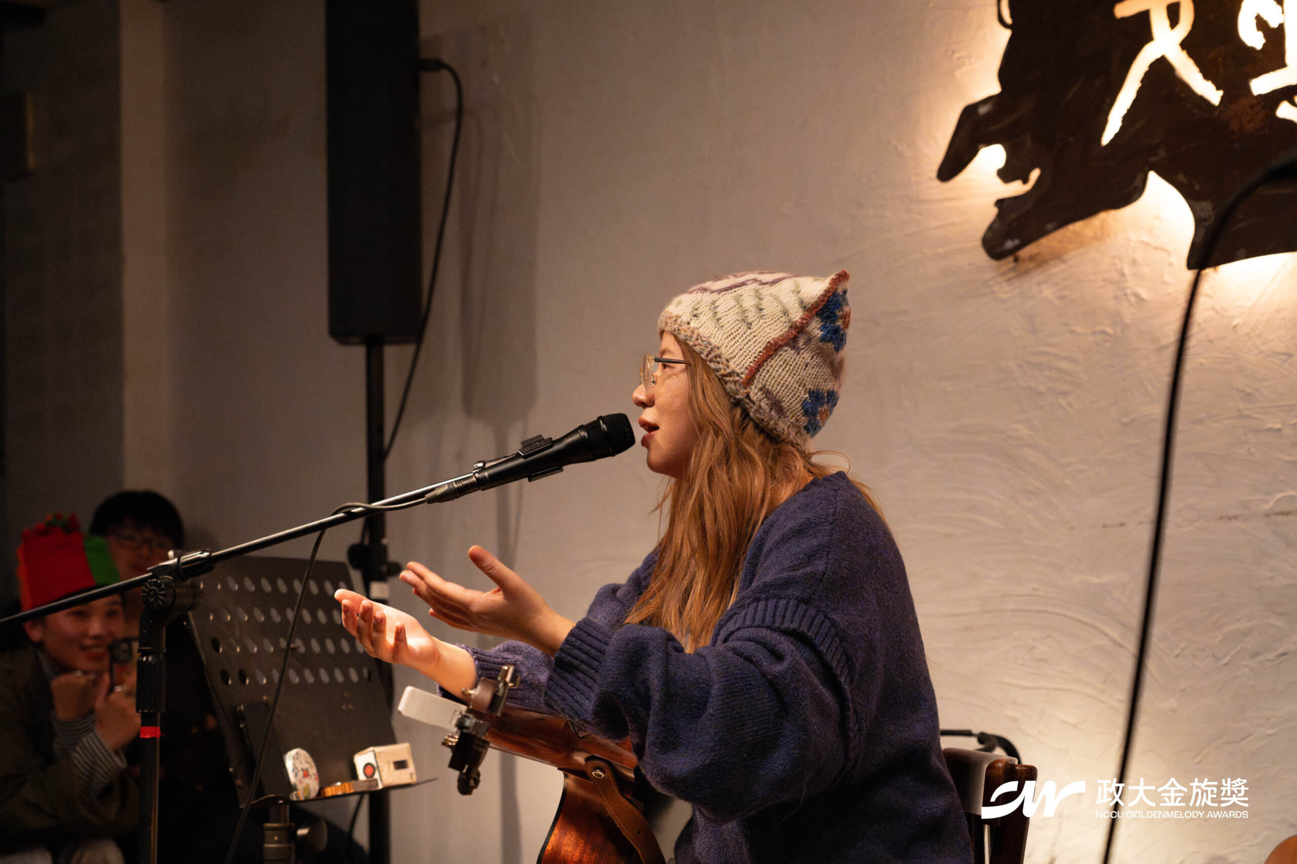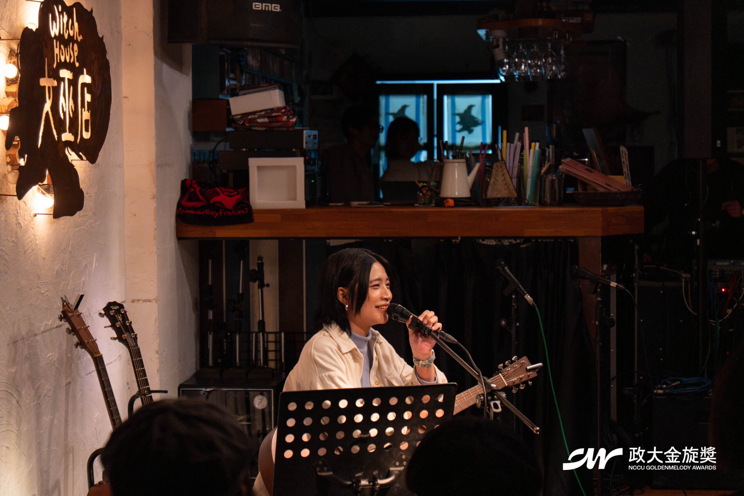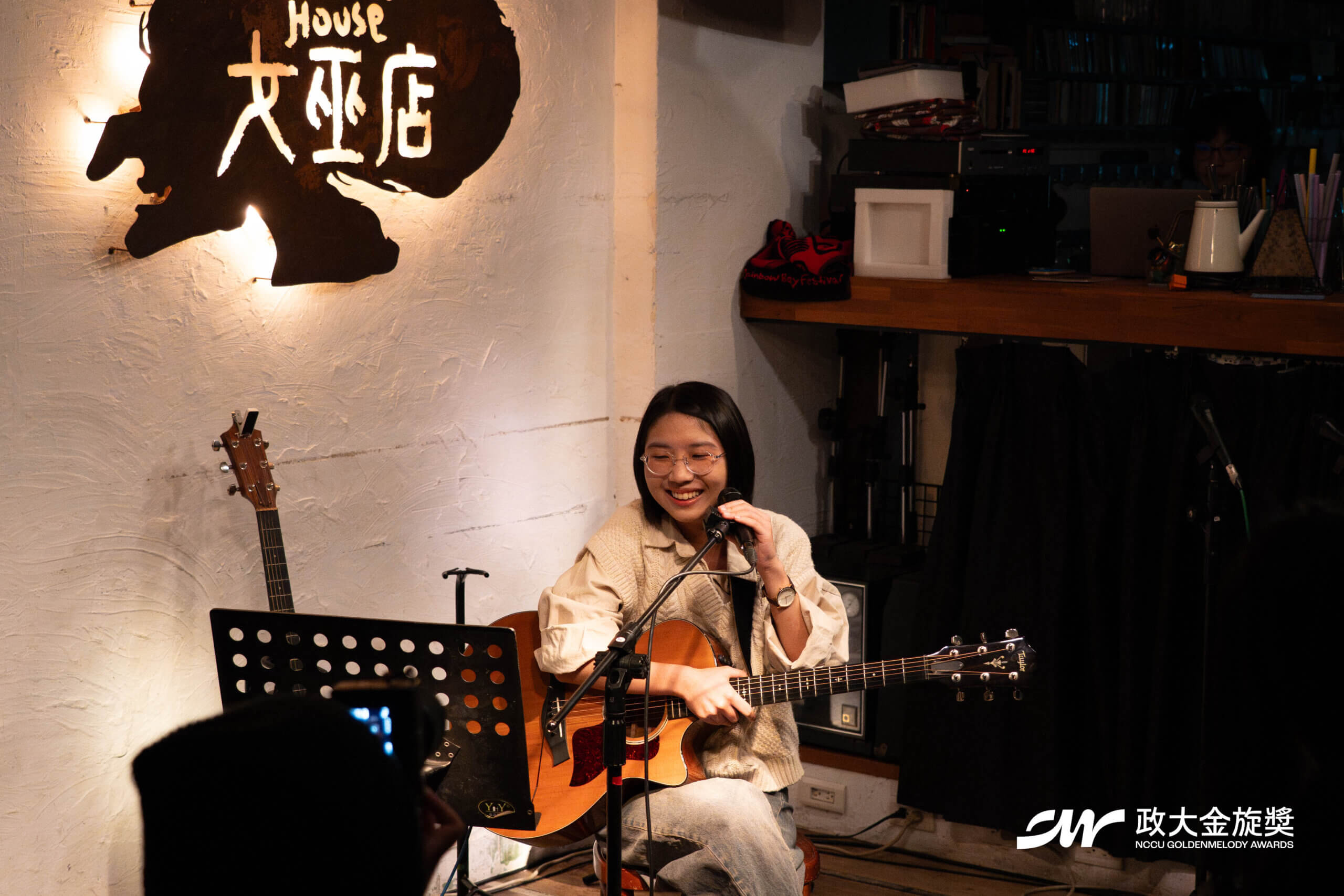 12 月冷冽的空氣貼在窗外,而室內昏黃的燈色像一層柔軟薄紗,為女巫店罩上了溫度。這裡似乎有人按下回憶的倒放鍵,曾經深埋腦海的那段旋律再次縈繞耳畔。一把木吉他、一隻麥克風、一個故事,隨著一切就緒,第四十三屆政大金旋獎年度講唱會「緣聲帶」悄悄地展開。